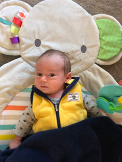 To be honest with you, buddy, afternoons are rough at the moment. Whoever coined the term “witching hours” was spot on. The last two weeks, you melt down around 4:00 and are on and off again fussy until bath time. Fortunately, you love bath time: it settles you down, and you eat great afterwards. Our nights are still pretty good. Your average stretch in between feedings is about four hours; some nights it’s less than three but some it’s five or six.! Since our trip to Andalusia for Thanksgiving, though, it’s improved some: you still aren’t napping much in the afternoon but you aren’t as fussy. We're going to get back in the groove with Moms on Call this week, so I'm feeling optimistic.