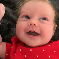 Your little personality is starting to show through. You are all things smiley and content for the majority of the day, responding quickly to anyone talking to you. Your dimples on either side of your mouth are worth the level of silliness it takes on our end to make you laugh big enough for us to see them.